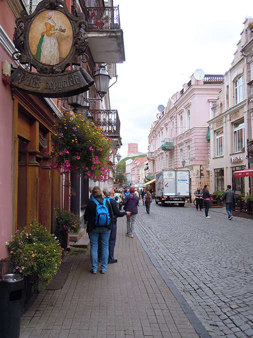 Indkøbs- og restaurantgade. I baggrunden Gediminas tårn.