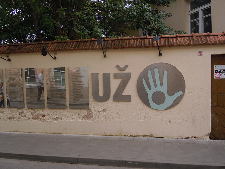 Forfatningen er opsat på bronzeplader på en husmur i Uzupis.