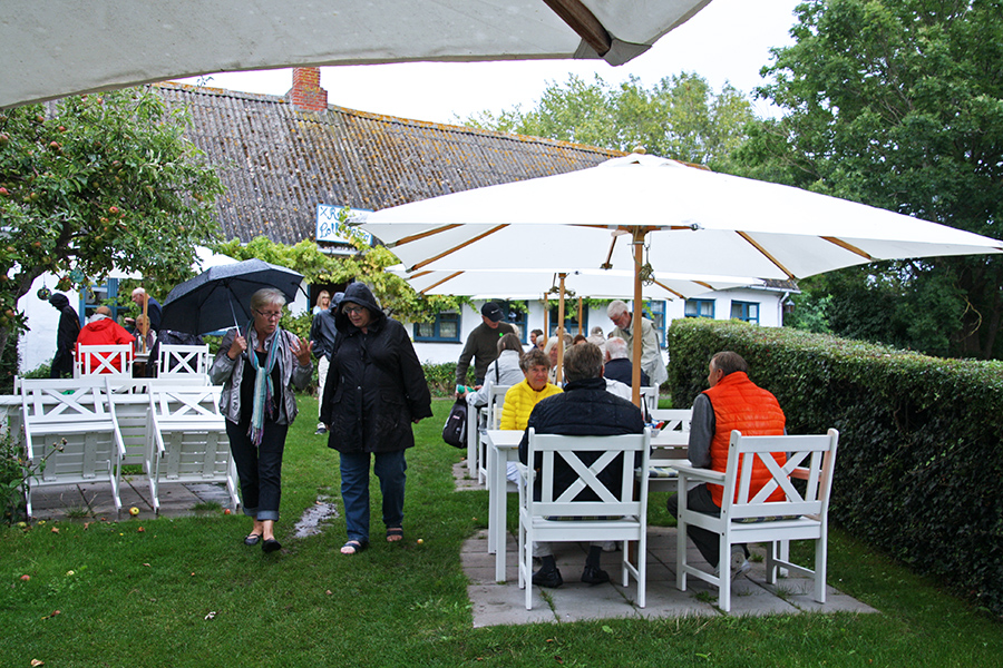 Som det sidste på denne dejlige tur fik vi kaffe og lagkage i regnvejr.