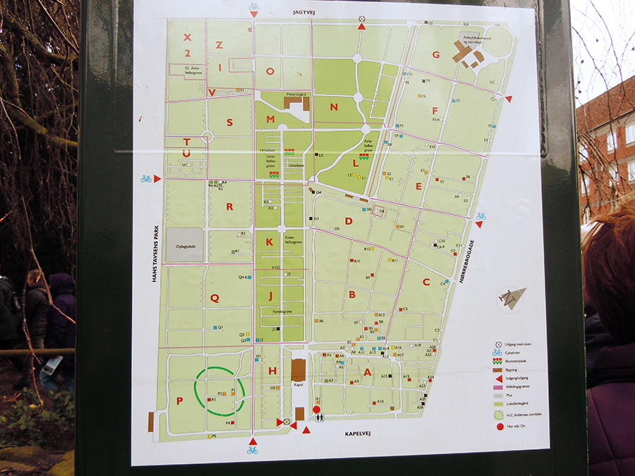 Oversigtstavle over den gamle fredede del og den nyere del af kirkegården.