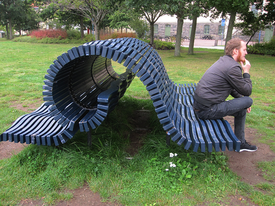 Moderne bænk udenfor museet.