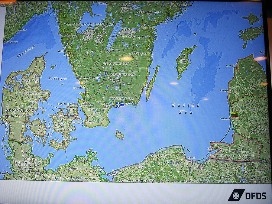 Retur til Karlshamn. Vi gik ombord på færgen og satte kurs mod Klaipeda i Litauen.