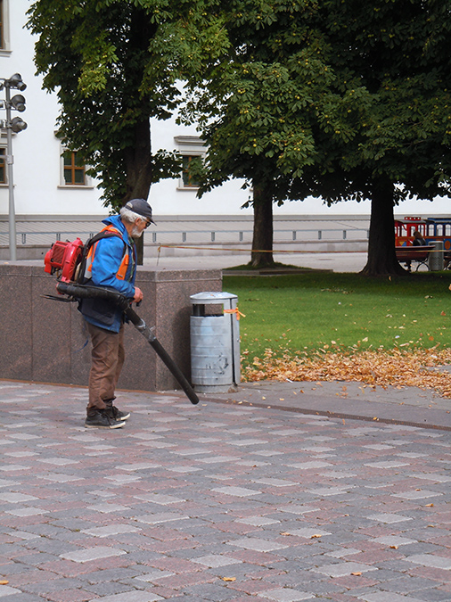 Flittig arbejder, som larmede, lugtede og flyttede blade dagen lang.