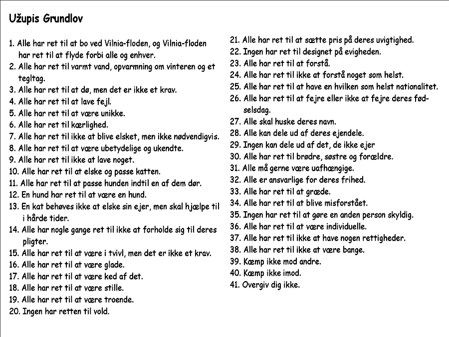 Den består af 41 paragraffer, som handler om, hvad man må.